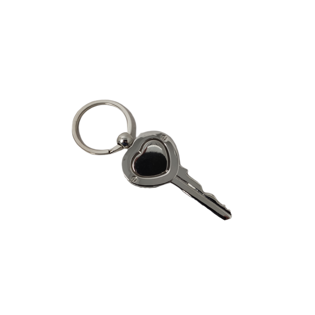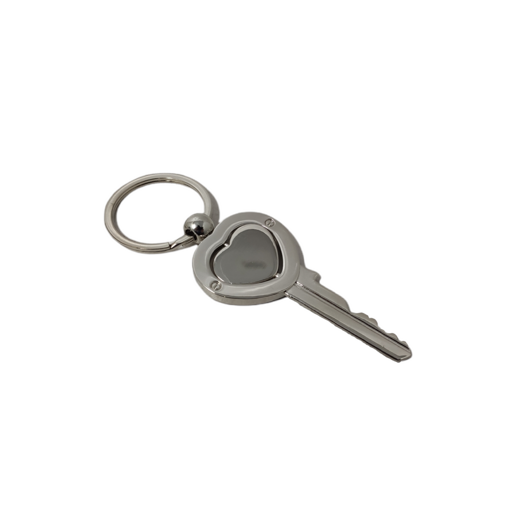 10 Llaveros de metal en forma de llave con corazón giratorio al centro.